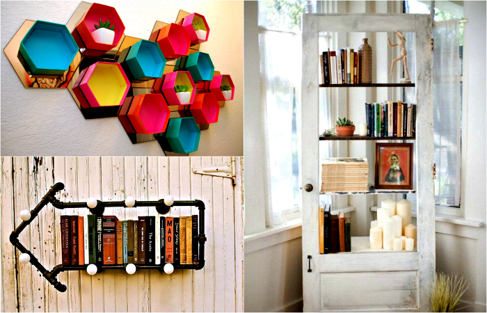 - كما ذكر أعلاه - وفورات.أرفف مصنوعة من مواد لديك في المنزل أو الأشياء القديمة غير الضرورية ، تقلل إلى حد كبير من التكاليف.