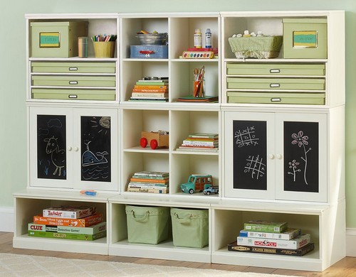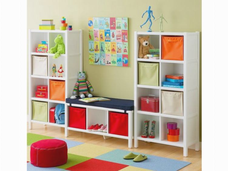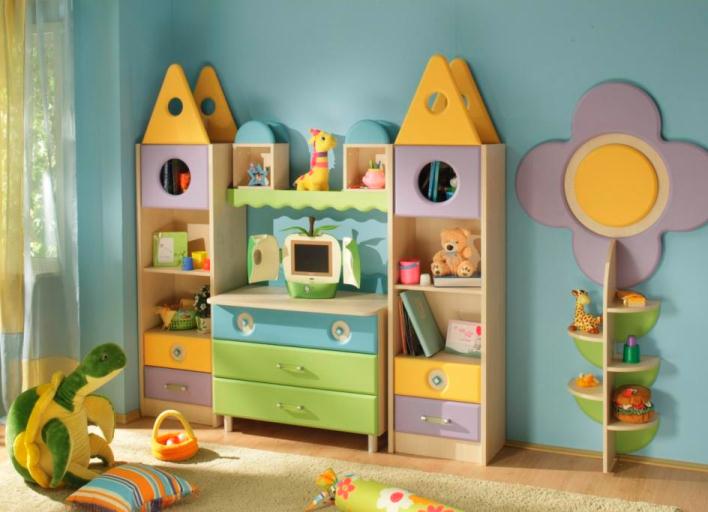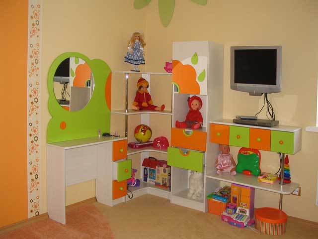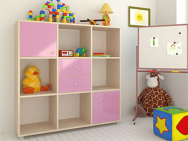 من بين مجموعة كاملة من أنواع الأثاث ، مع وظائف معينة ، وصناديق مفردة ، والأدراج ، ومجموعات من الصناديق ، والعثمانيين ، والأرفف المعلقة لتخزين لعب الأطفال وأكثر من ذلك تبرز لغرفة الأطفال. الأفضل هو وضعه على طول منافذ الجدار الحرة ، والتي يمكن أن تزيد تدريجياً في الكمية.
