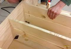 الخطوة التالية هي صناعة الأرفف ذات المقسمات. على الأجزاء النهائية يتم قطع الطيات وتصنع الأخاديد في الأماكن الصحيحة. يتم لصقها بالمفاصل مع الغراء خاصة على الخشب وتجفيفها جيدا. لضمان موثوقية التصميم ، يتم تشديد الركن المعدني من داخل العناصر. يجب تزويد اللوحات بمفصل زاوية جيد ، يمكن تزويده بفتحات وثقب إضافي. عينة أداء إزميل أو إزميل.