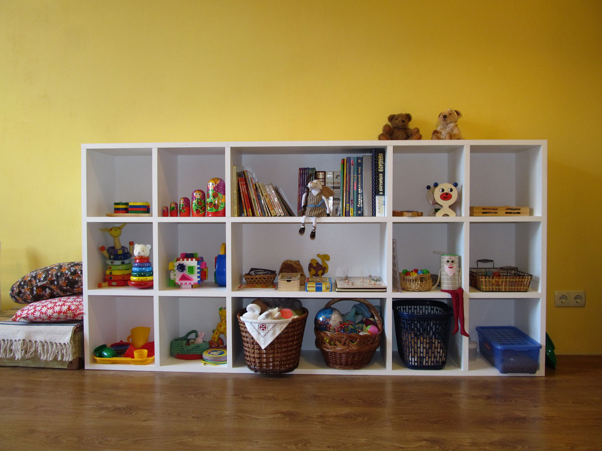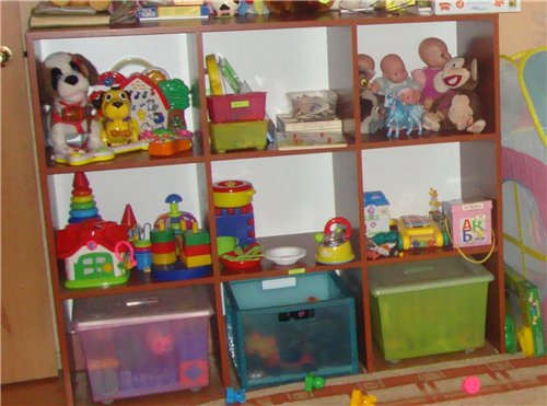 - ما يصل إلى عام واحد - كقاعدة عامة ، في هذه السن ، يكون للطفل مجموعة صغيرة من الألعاب التي يمكن وضعها في صندوق أو قسم واحد مع عدة أرفف.