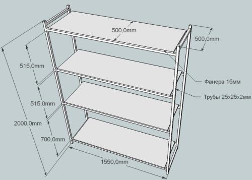 عند تصميم الحامل ، من الضروري مراعاة توزيع الحمل وعدد الأرفف (كلما كان العنصر أخف وزناً وأصغر حجمًا ، كلما كان يجب أن يكون الإطار أعلى ، على التوالي ، يجب تعزيز الإطار السفلي).