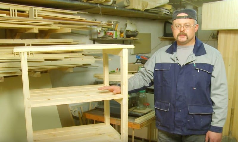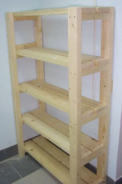 يتكون أبسط الرف من قضبان عمودية (أحيانًا تصنع جدرانًا صلبة) وأرفف. لمزيد من الثبات ، يتم استخدام بنية الإطار عندما يتم توصيل ألواح الألواح الخشبية بالأشرطة الموجودة بالبراغي في الأعلى والأسفل. نظرًا لأن أثقل الأشياء تكون دائمًا في القاع ، فيجب تعزيز الإطار السفلي بأشرطة عرضية.