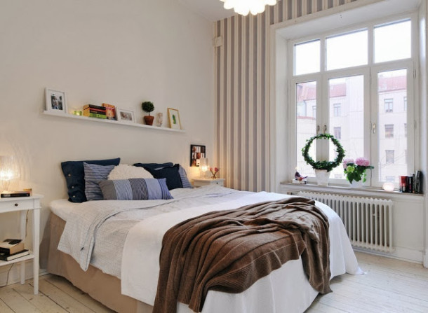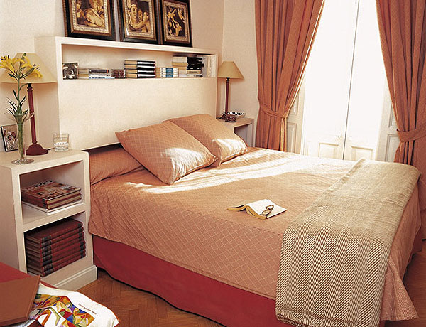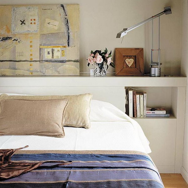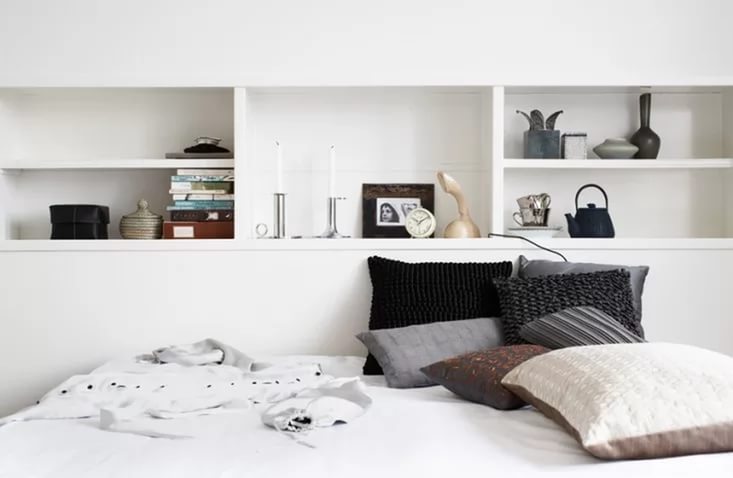 سوف يضيف الرف الواسع الموجود فوق السرير مساحة مكشوفة.