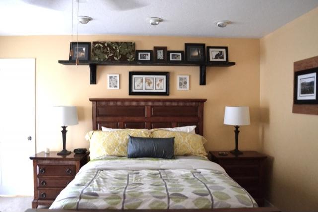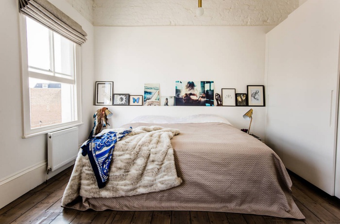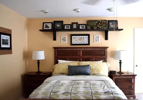 الرف فوق السرير هو المكان المثالي لتخزين الصور العائلية.