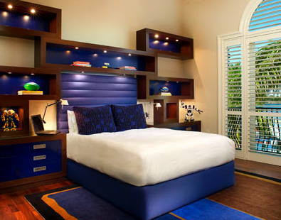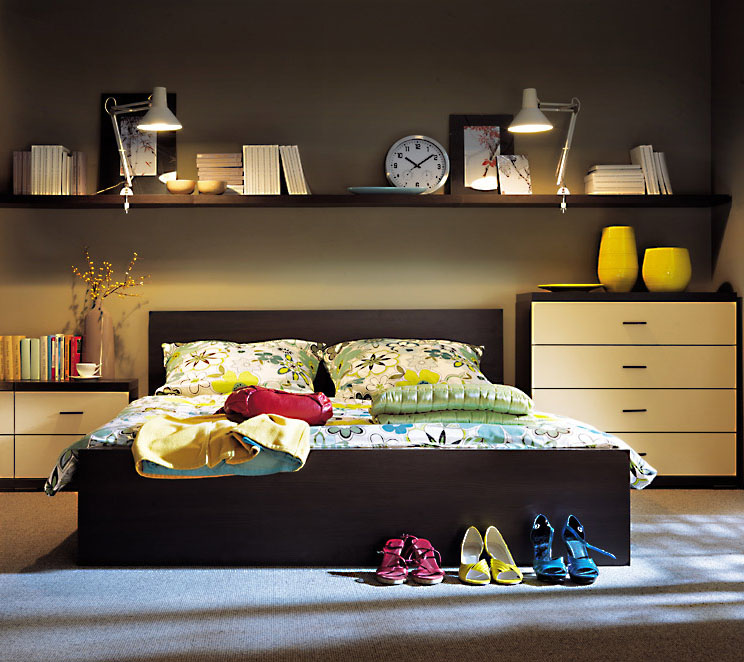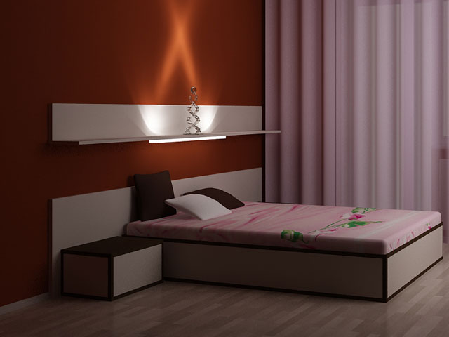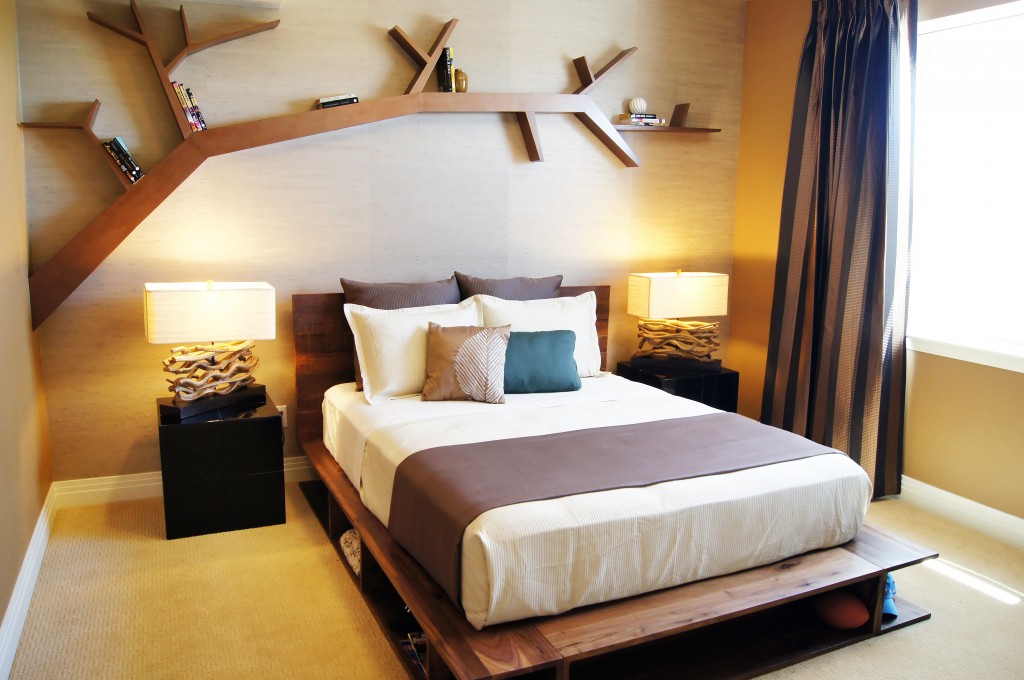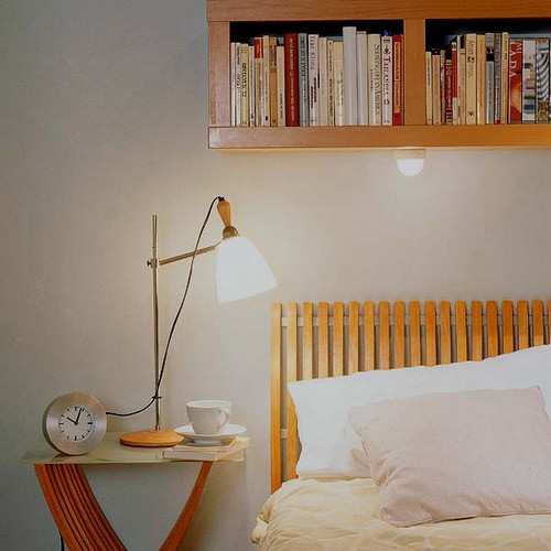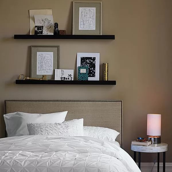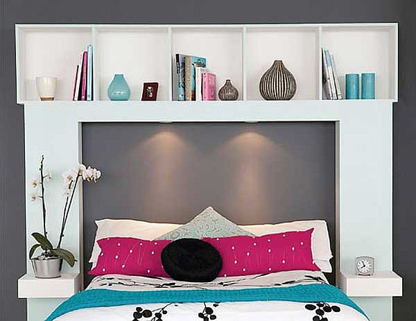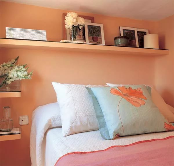 أكثر إشراقا داخل الغرفة ، يجب أن يكون من السهل تصميم الرف فوق السرير.