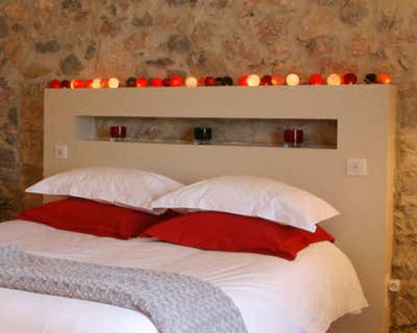 بالإضافة إلى جميع المزايا المدرجة في الأرفف ، الموجودة فوق السرير ، هناك ميزة أخرى - إنها وجهة رومانسية. يمكنهم وضع الشموع المضاءة والزهور وترتيب موعد جميل لا ينسى مع من تحب.
