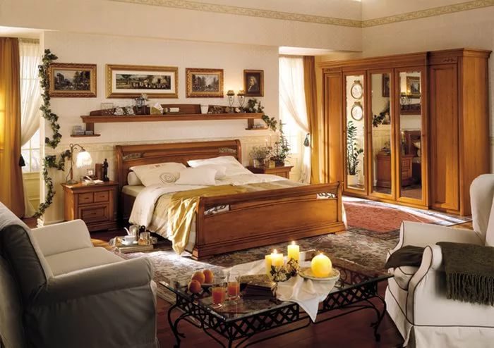 - الخشب الطبيعي يعطي الغرفة رائحة خاصة وينقل حرارة الطاقة. ستظل هذه المواد شائعة دائمًا ، حيث تبدو أنيقة وتناسب التصميم العام لغرفة النوم. يمكن تغطيتها بورنيش عديم اللون ، وبعد ذلك سوف يكون الملمس بنمط طبيعي جيد ، أو دهان لتطابق المساحة الداخلية للغرفة بأكملها.