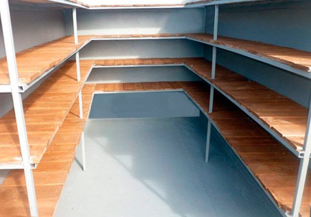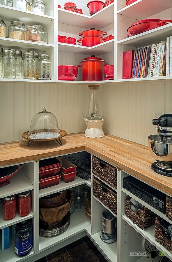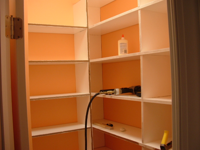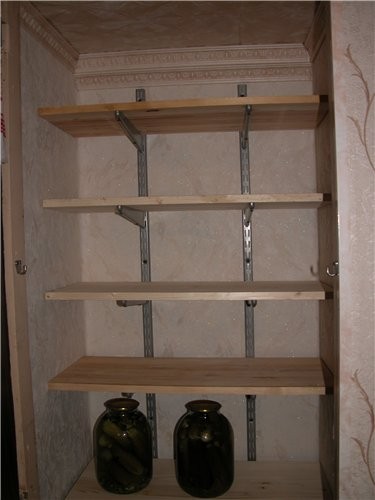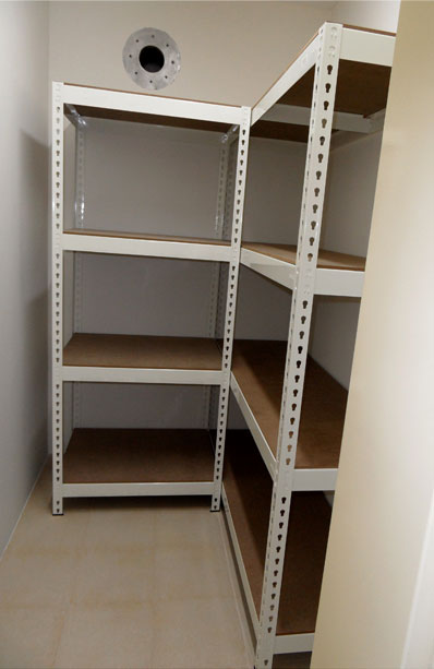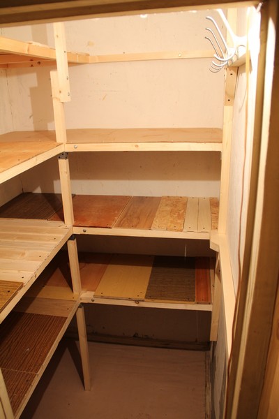 من المهم تحضير غرفة المؤن بنفسها ، ومحاذاة الجدران وترتيبها مسبقًا رفوف لقد وقفوا بسلاسة ولم تكن هناك حاجة لتعديلها مع الارتياح الجدران.