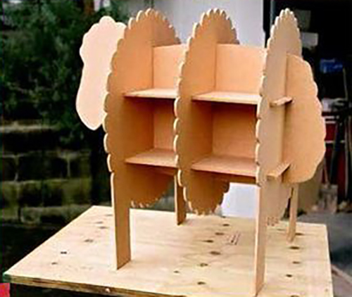 عشية الخطوات الأولى للعمل ، من الضروري اتخاذ قرار بشأن تصميم وبناء رف مصنوع من الورق المقوى ، ويمكن أن يكون له شكل كلاسيكي ، يكون في شكل رف أو شكل ما (الفيل ، الدب ، الحيوانات الأخرى أو الصور) - كل شيء يعتمد على خيالك وقدراتك. أبسط ، يمكن الوصول إليه من كل خيار هو الكلاسيكية أو الرف ، لأن إنشاءه يتطلب الحد الأدنى من المهارات. أكثر صعوبة في تصنيع والأرفف مجعد غير عادية. يحتاجون إلى مقاربة إبداعية ، وفي معظم الحالات - القدرة على الرسم ، تتطلب مزيدًا من الوقت لإنشاء.