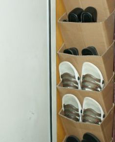 - يجب إرفاق الجزء السفلي من كل جيب بشريط لاصق أو مزدوج الوجهين أعلى الجزء السابق من الداخل ، مع ترك مساحة للأحذية.