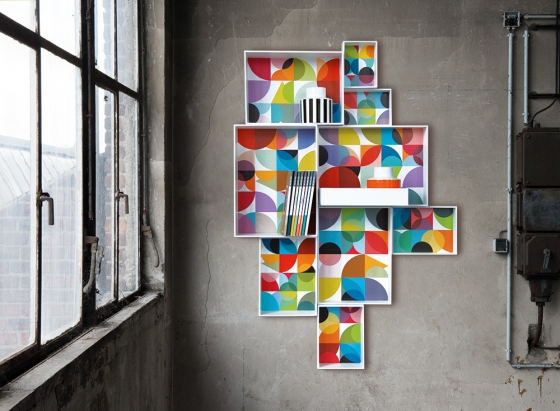 يتم لصق القطع القديمة لورق الحائط على كامل سطح المنتج ، أو فقط من الداخل ، وترسمه بالخارج باللون المفضل لديك. يمكنك طلاء الرفوف بالكامل ، وبمساعدة الإستنسل أو إنشاء أنماط أو تصميمات فريدة خاصة بك.