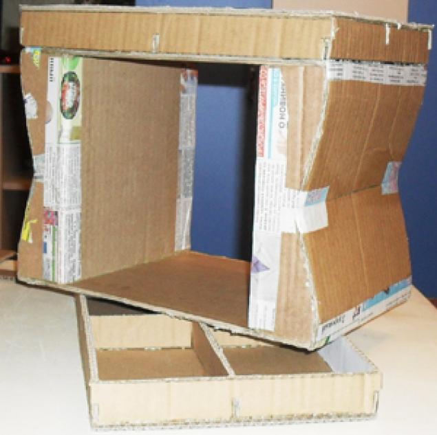 لزيادة القوة ، في صندوق من الورق المقوى المموج السميك ، أدخل ثانية واحدة أصغر قليلاً.ثم سوف تكتسب الهيكل صلابة كافية ، وسوف تكون قادرة على تحمل الأحمال الخطيرة.