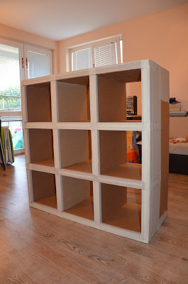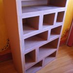 - حجم الرف المطلوب ، يعتمد عدد المواد على الرغبات الشخصية. الخيار الأفضل هو حامل مكون من خمسة أقسام بارتفاع 110 سم على جانب ثلاثة أقسام وارتفاع 69 سم مع قسمين. سيكون كل قسم مربعًا ، وحجم الجانبين - 30 سم.