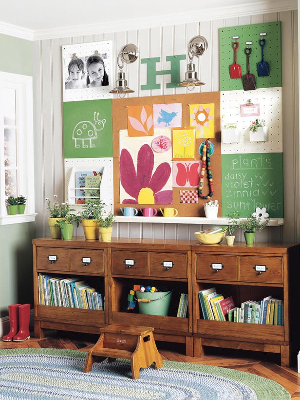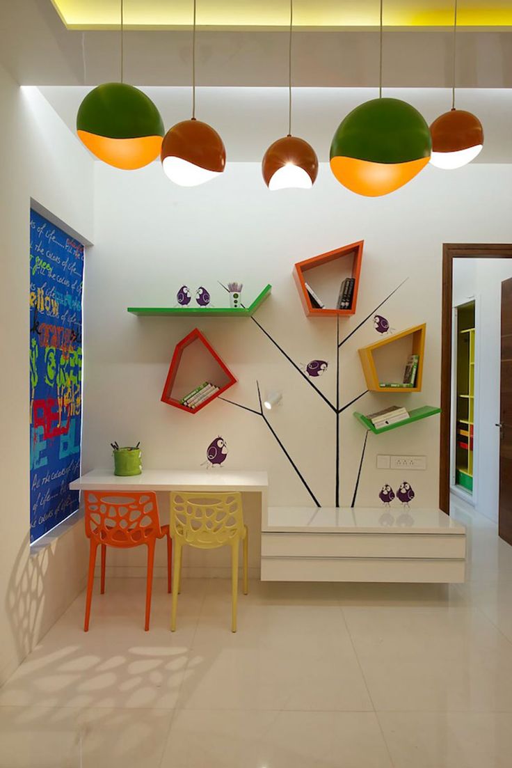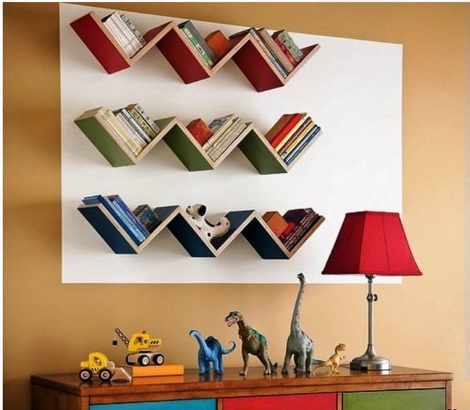 رفوف مثيرة للاهتمام وغير القياسية للكتب في الحضانة