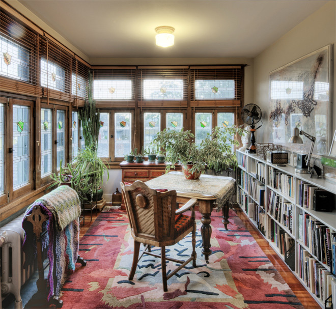 مكتبة المنزل الداخلية مع منطقة جلوس
