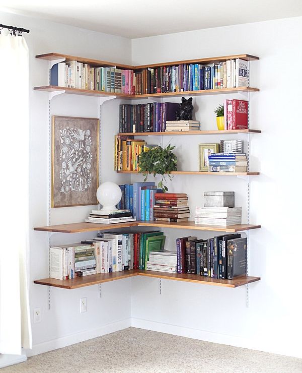 أرفف الكتب لمكتبة صغيرة بزاوية