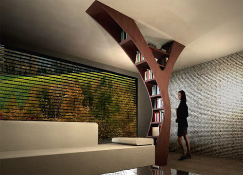 أرفف مدمجة للكتب على شكل شجرة من أجل الداخل غير العادي