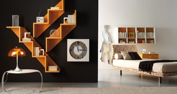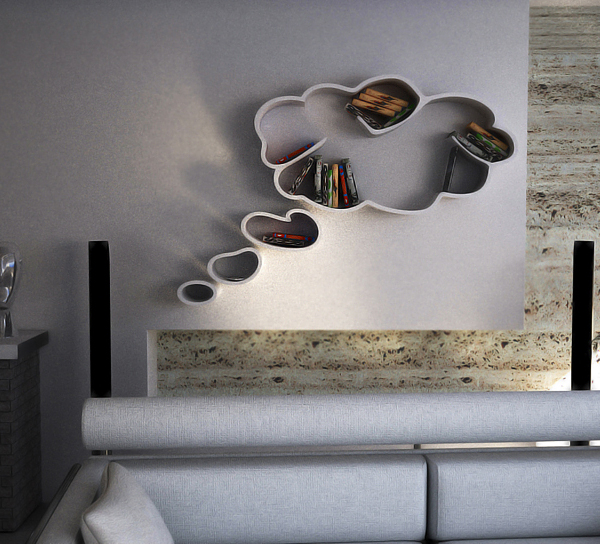 رفوف للكتب ذات الشكل غير العادي لغرفة المعيشة