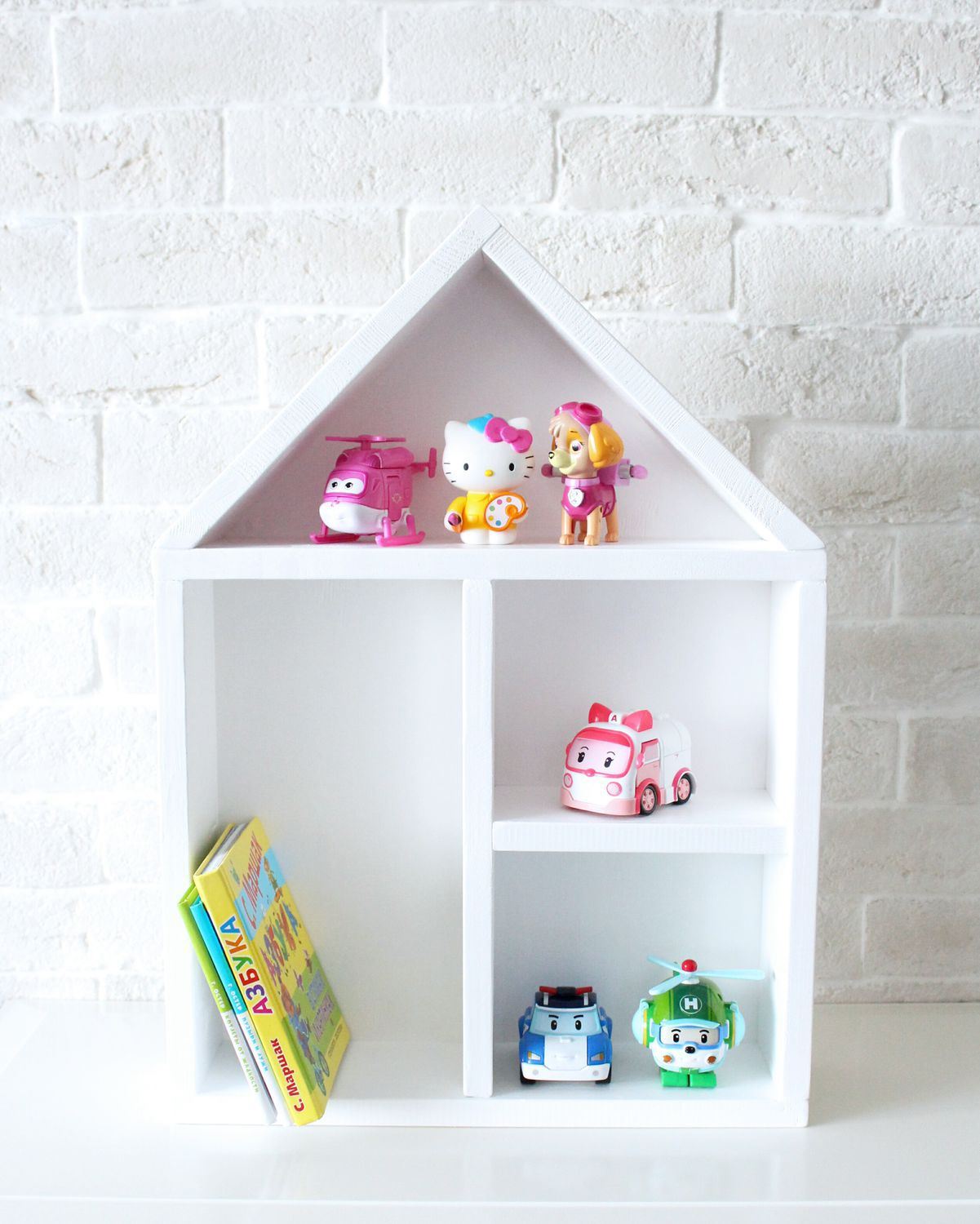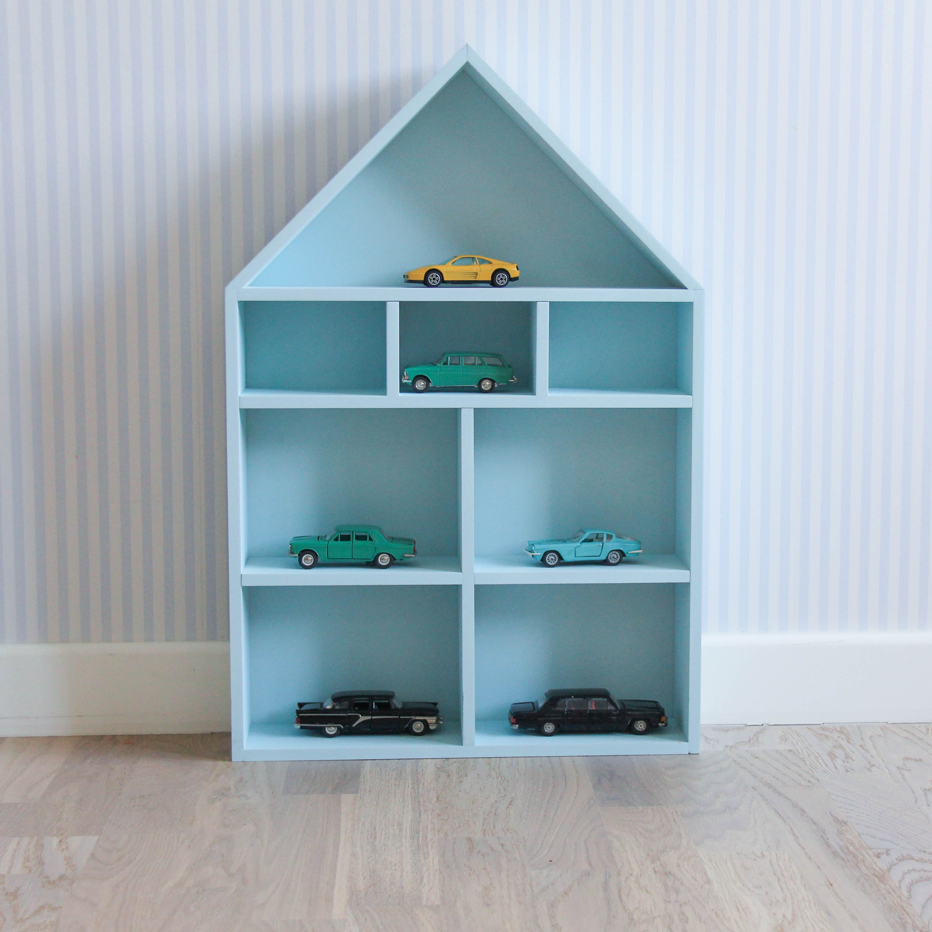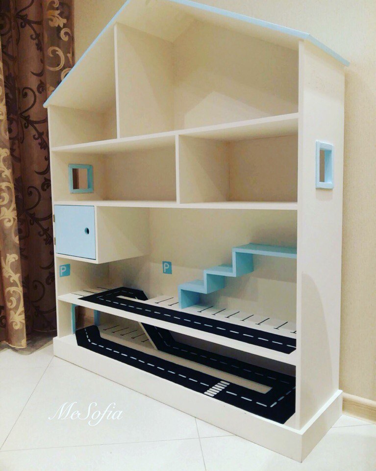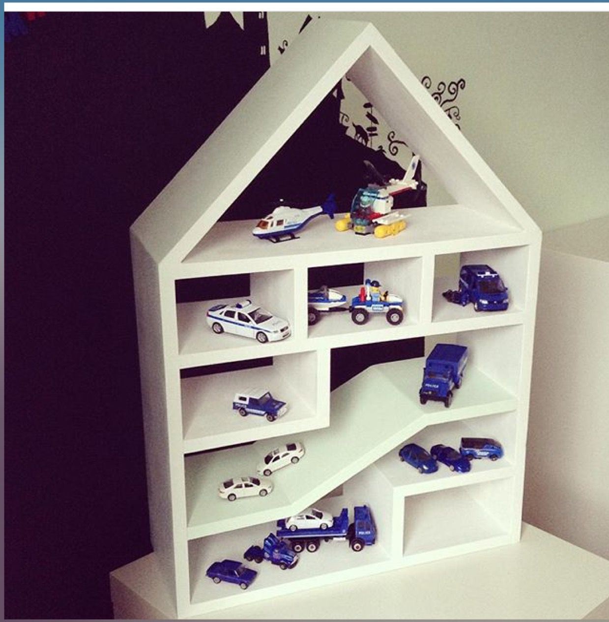 فكرة مثيرة للاهتمام من لعبة الرف للدمى والسيارات والكتب.