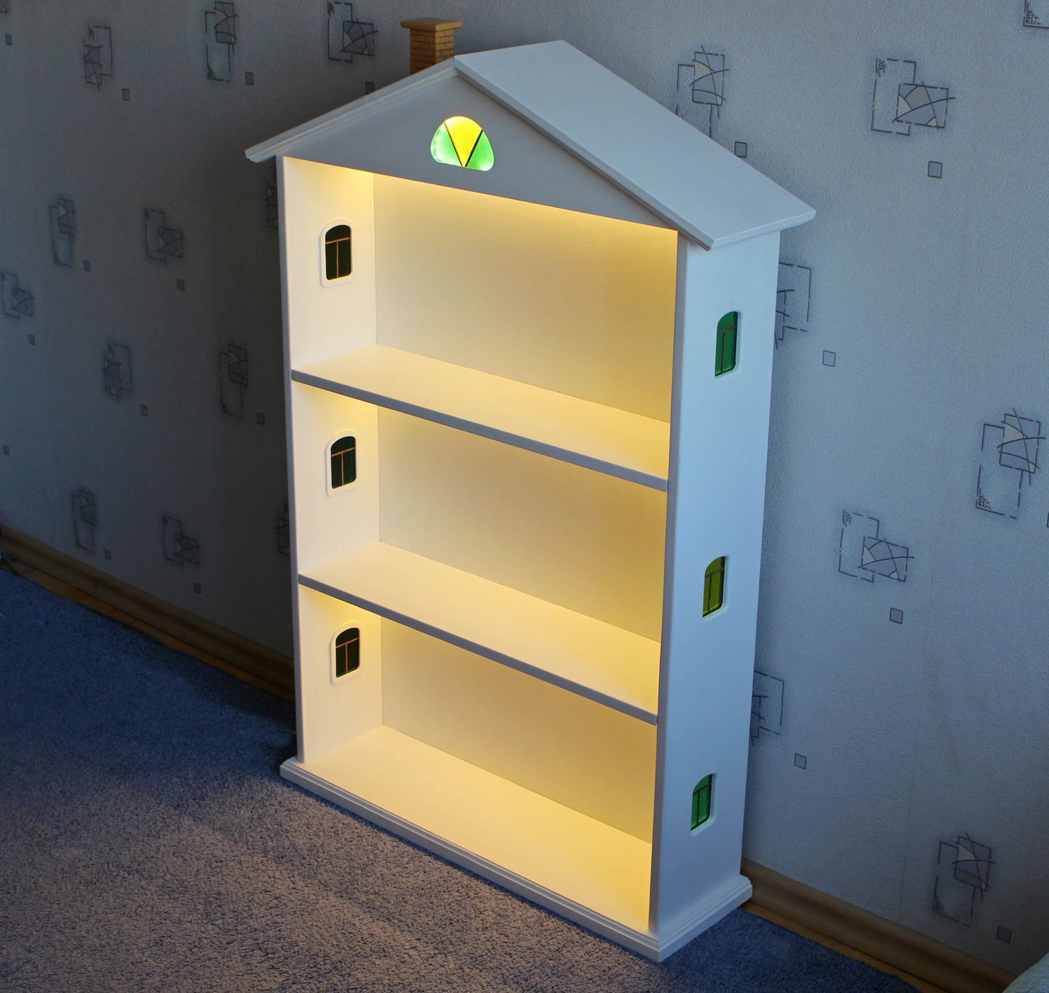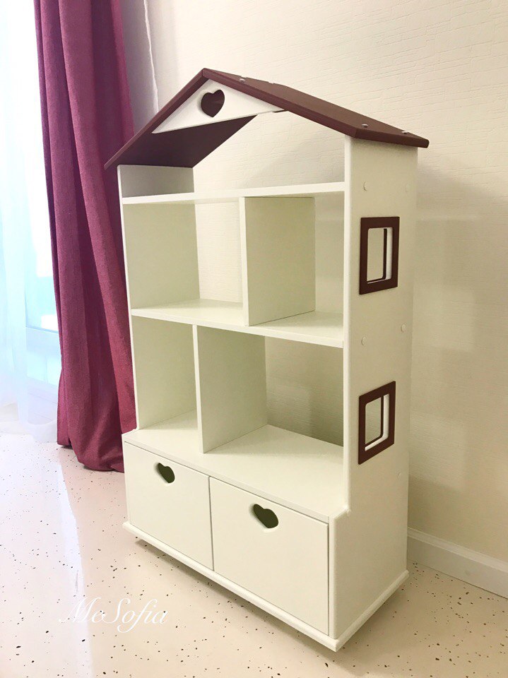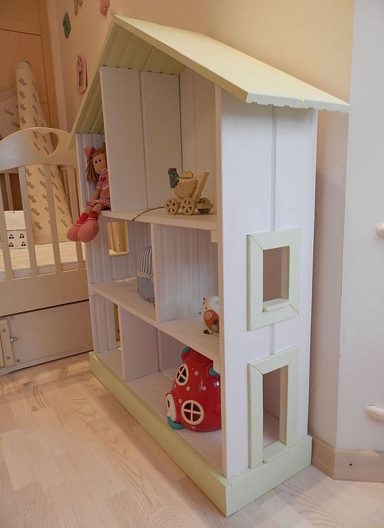 نقدم حلا مثيرا للاهتمام للحضانة - الرفوف في شكل منزل. هذا التصميم سوف يروق لأي شخص. طفل الذين تتراوح أعمارهم بين 3 إلى 10 سنوات. والغرض منه هو تخزين الألعاب وغيرها من الملحقات الترفيهية.