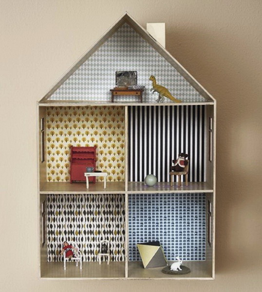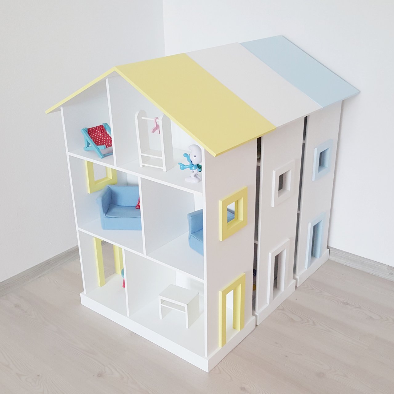 منازل الدمية مع الرفوف به طفل غرف وفقا لأسلوب هواياتهم ، أداء وظيفتها العملية.