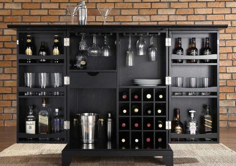 ميني بار في غرفة المعيشة يسمح لك بتخزين مشروباتك المفضلة بشكل صحيح وجميل