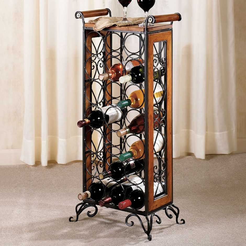 رف عمودي لعدة زجاجات من النبيذ لتناسب حتى في غرفة صغيرة.