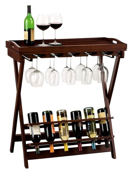 بار صغير ، يقف لزجاجات النبيذ والنظارات في نمط علوي الصناعي