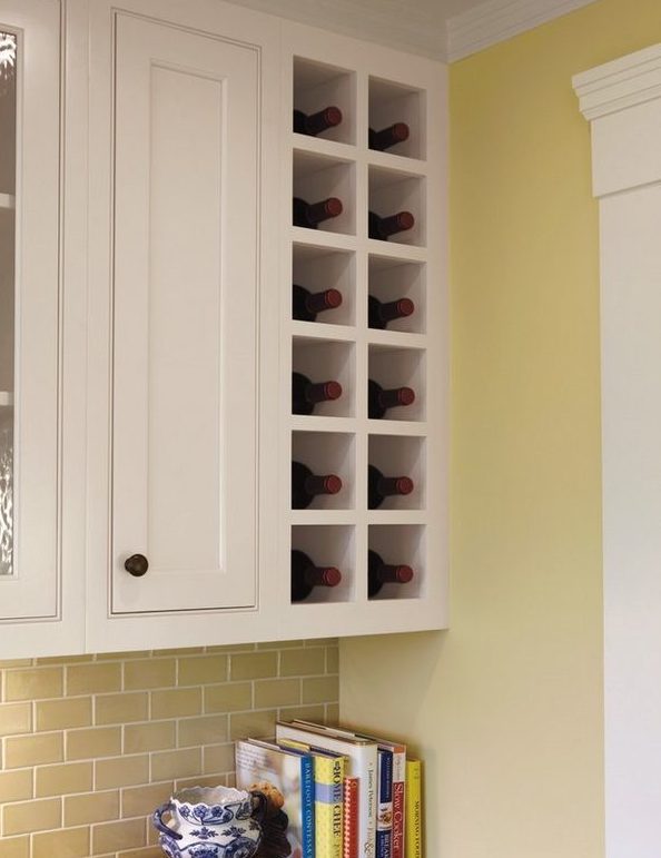 رف النبيذ على شكل غير عادي تقع على جدار المطبخ