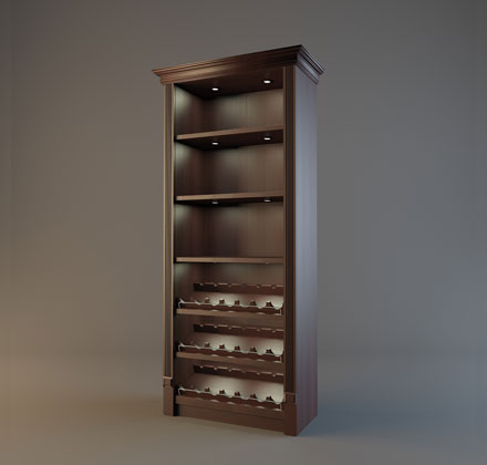وهي مقسمة حسب نوع التصميم ، وكذلك وضع زجاجات النبيذ.