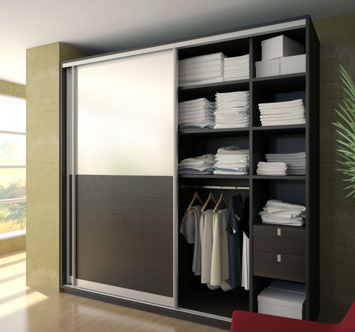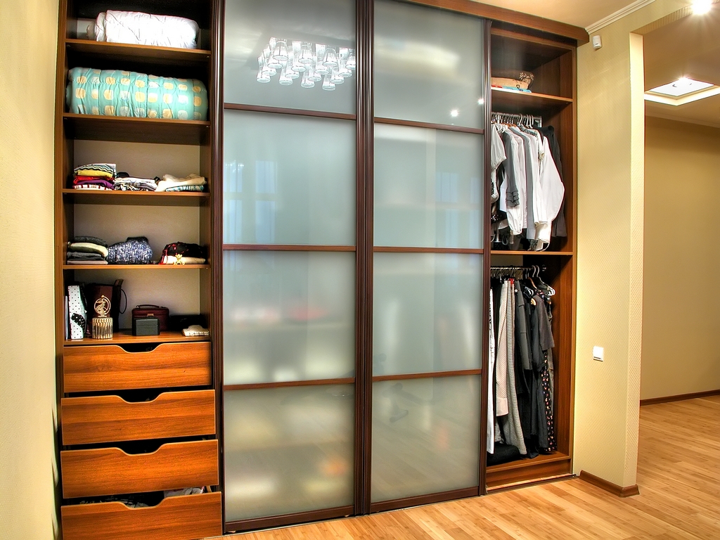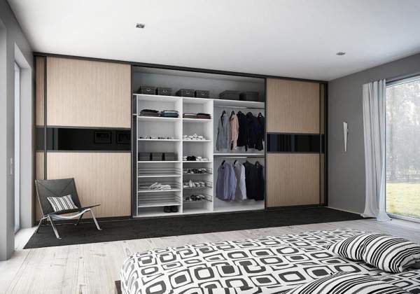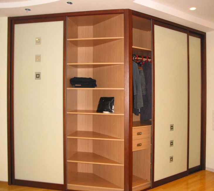 من الممكن صنع خزانة ملابس مدمجة ، وبدون الحصول على مكان مخصص بجدارين رئيسيين. "المدمج في" قد يكون جزئيا. في تصميمها قد تكون موجودة جدار جانبي أو سقف.