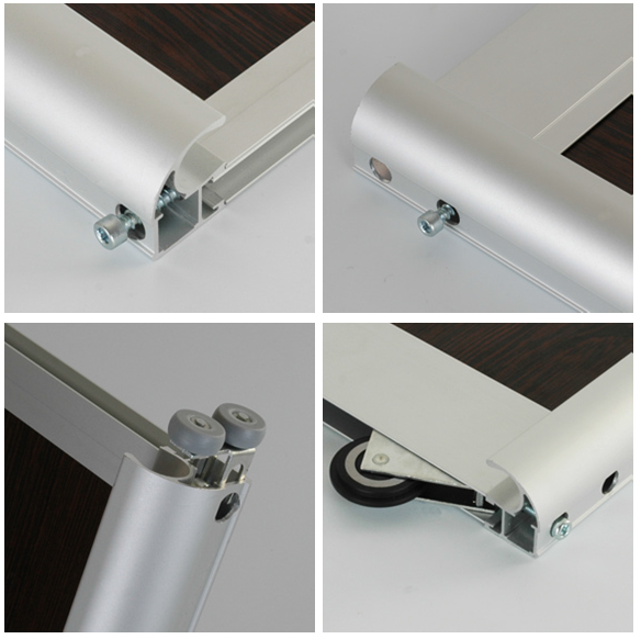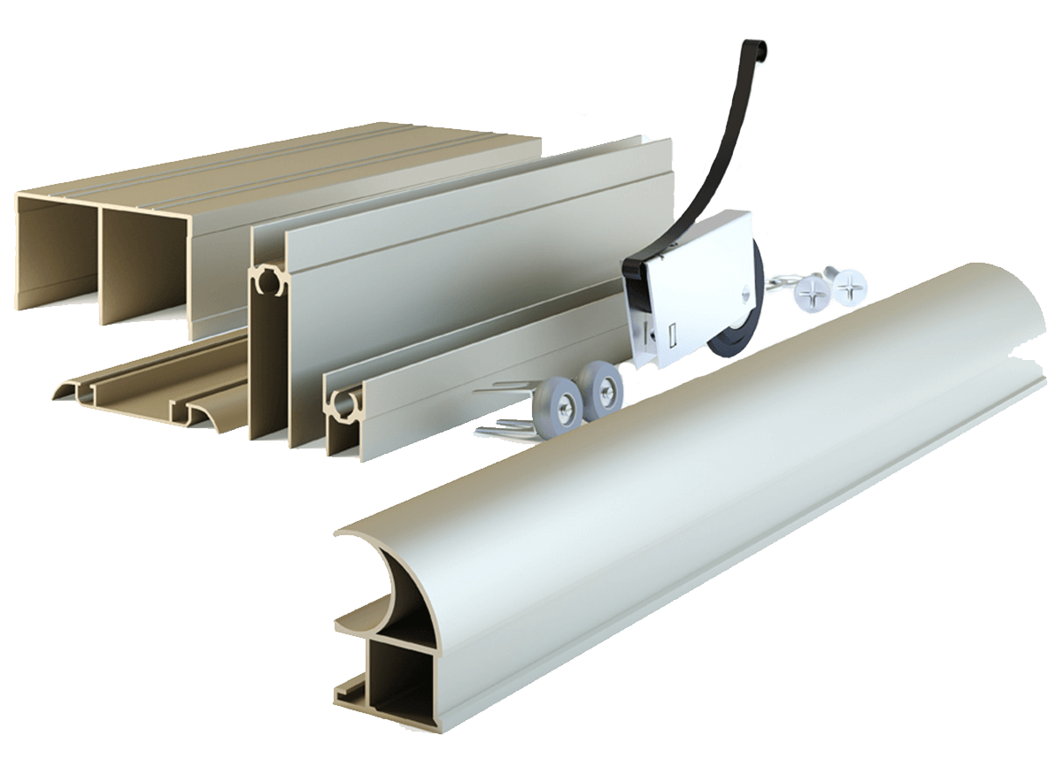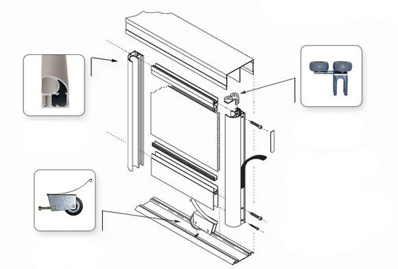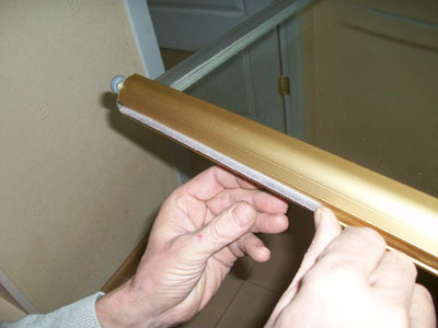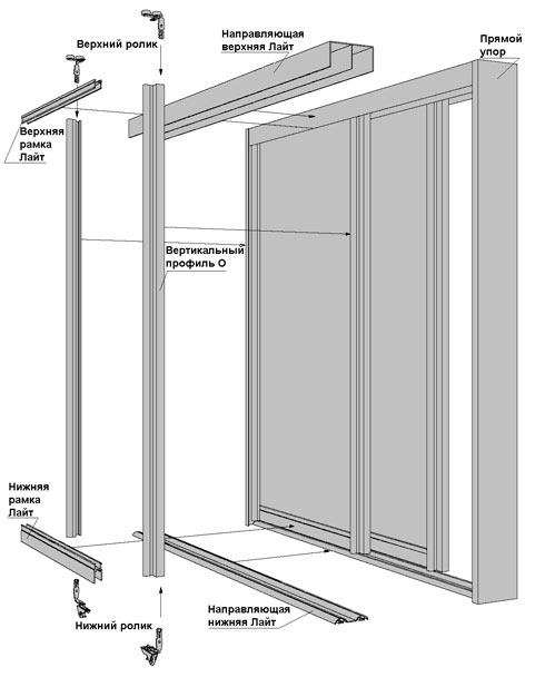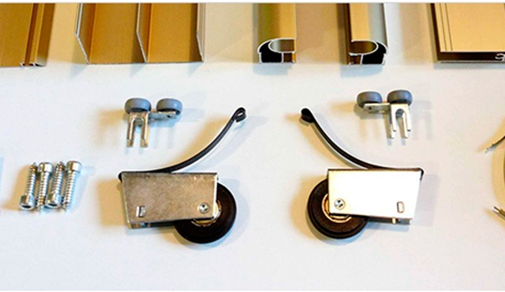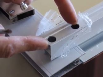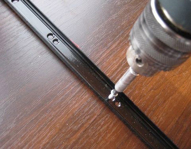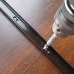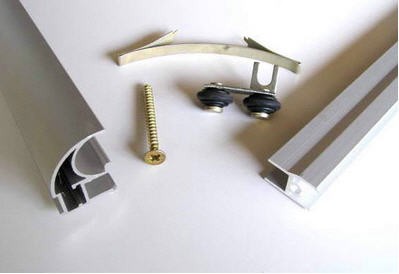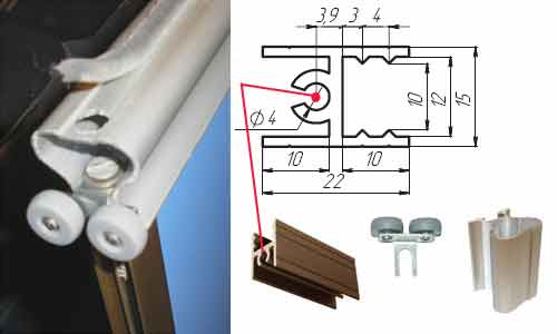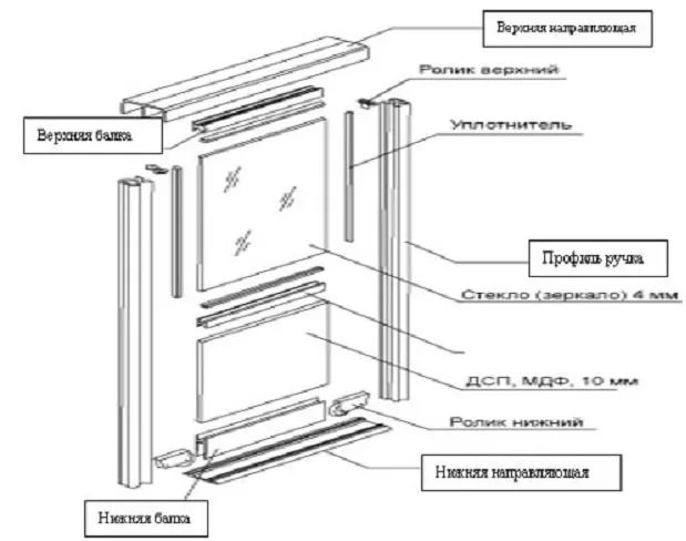 والخطوة التالية هي تركيب الأبواب. أولاً ، قم بربط الأدلة ، ثم قم بتثبيت السكة على البراغي. نقوم بإدخال الأبواب ، وتأكد من فتحها وإغلاقها بلطف. تصحيحها إذا لزم الأمر. آخر نلتزم فرش الختم. نعلق المقابس إلى الثقوب من تأكيدات.