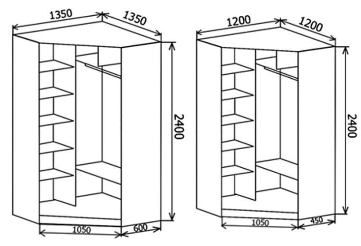 بعض طرازات الخزانات قادرة على التحول تحت ميزات الغرفة: وجود ممر ، استراحة في الحائط حيث يمكن وضع الخزانة.