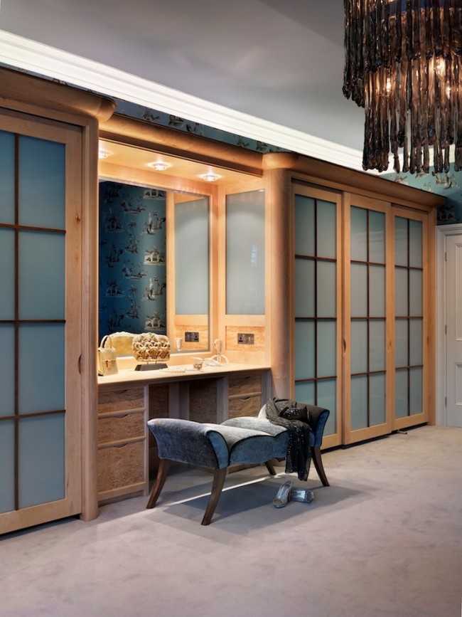 أفضل منظر اقتصادي هو خزانة ملابس مدمجة مع ركن للجلوس ، والتي تبدو مهمة للغاية اليوم.