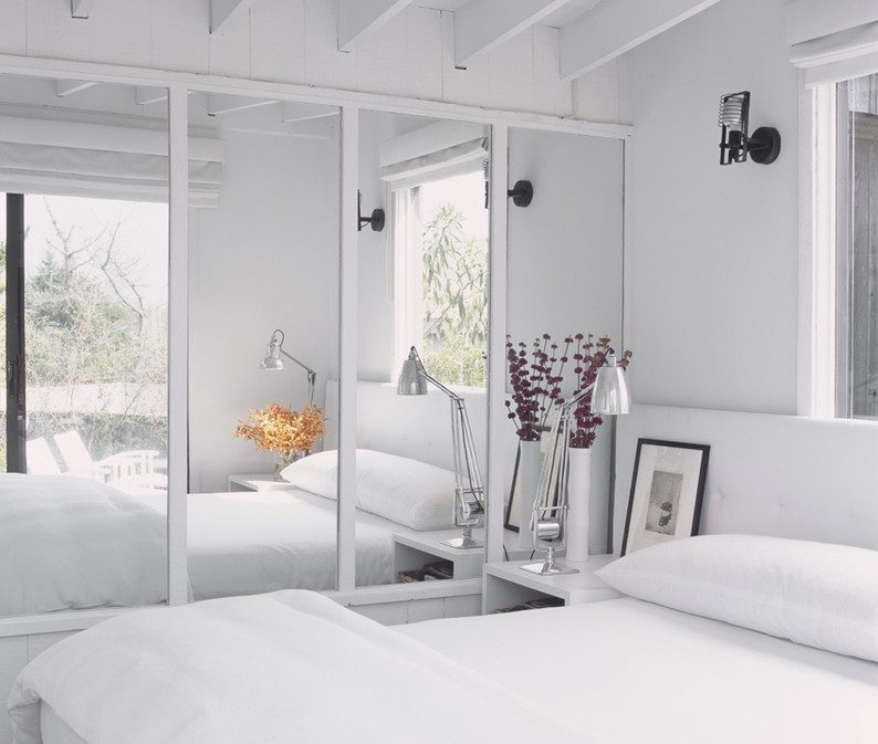 تتناسب خزائن الزاوية بشكل مثالي في غرفة النوم الصغيرة ، مما يساعد على توفير مساحة أكبر.
