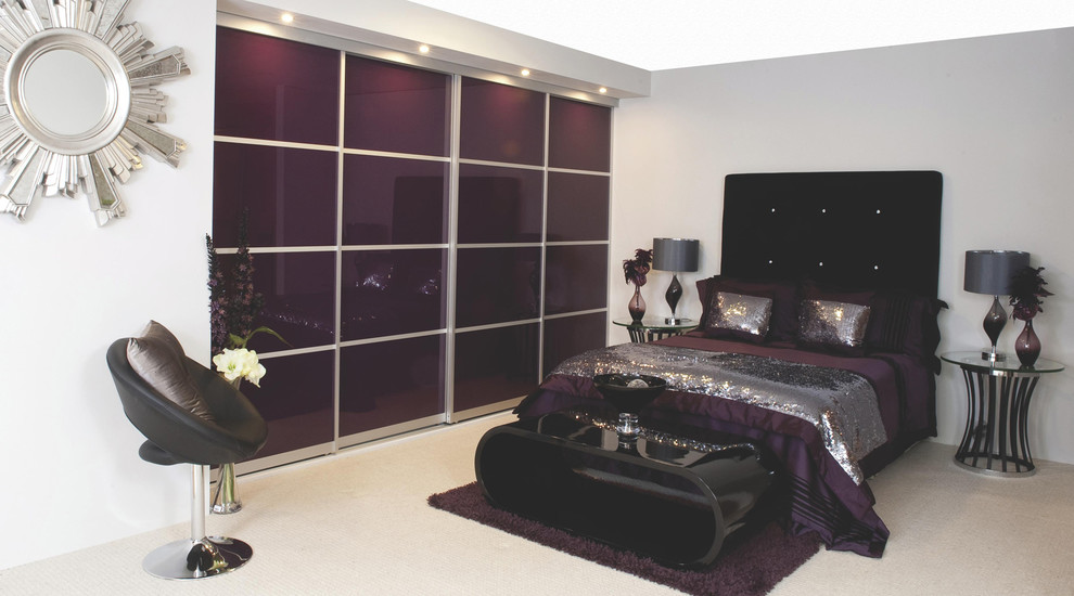 خزانة ملابس مشرقة متعددة الألوان في غرفة نوم حديثة.