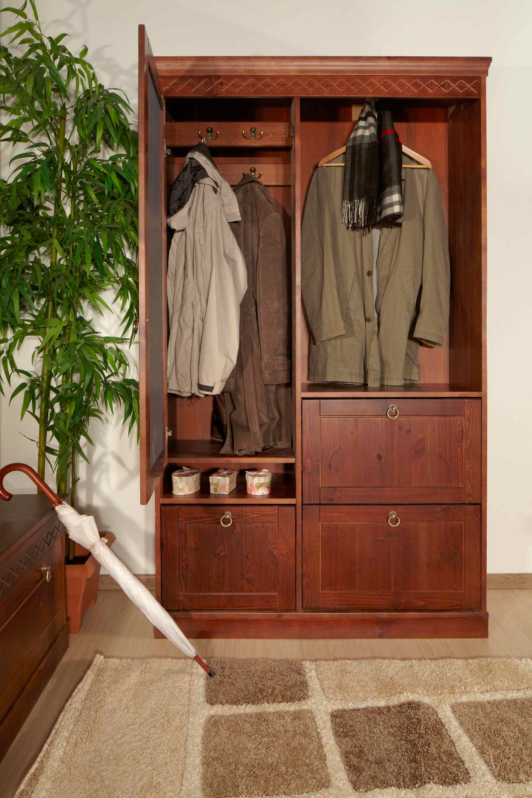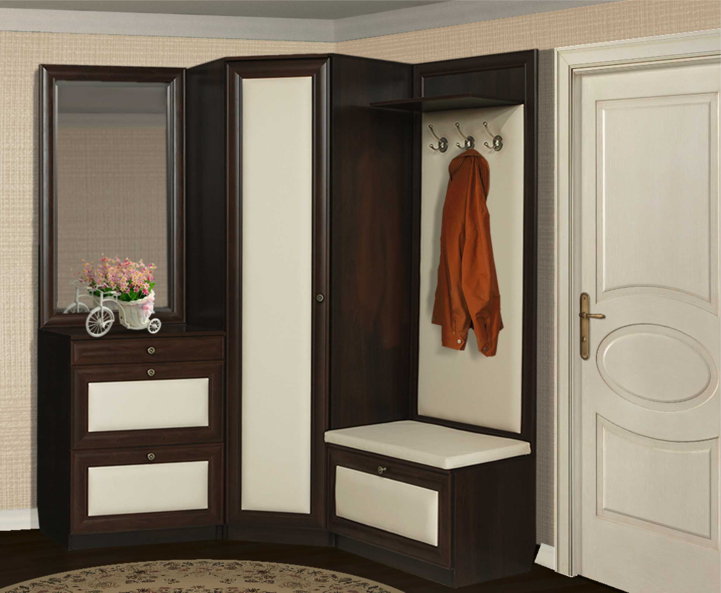 ستكون المدخل غير مكتملة إذا لم يكن بها خزانة فسيحة جيدة. ليس من الضروري شرائه ، لأن عملية التصنيع بسيطة للغاية.
