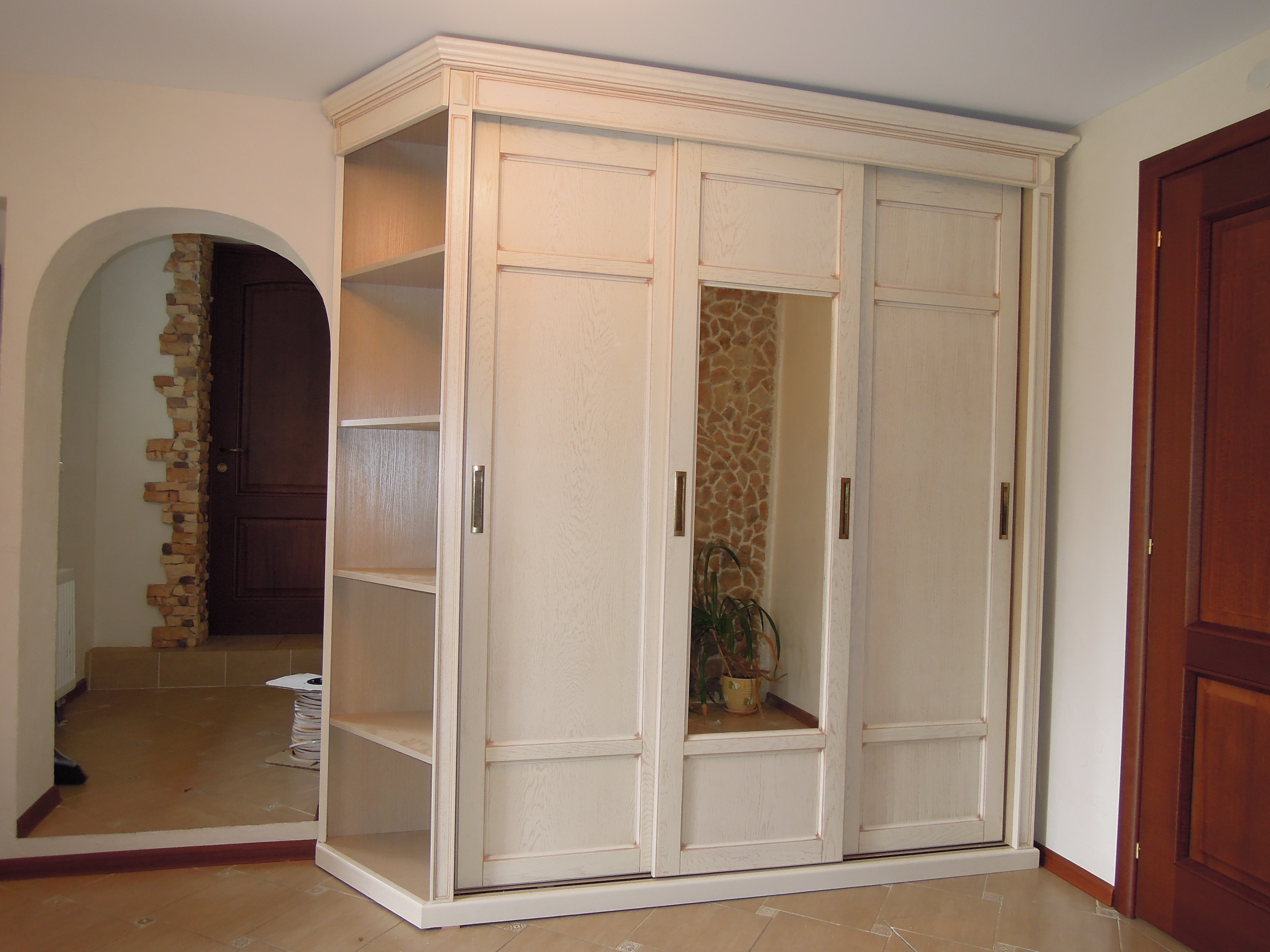 - بالنسبة للغرف الصغيرة ، تعد خزائن الملابس هي الأكثر ملاءمة بسبب الأبواب المنزلقة ، وهي مصنوعة بحجم معين من الغرفة ، ويمكن تثبيتها حتى في الأماكن الضيقة ، مثل الممر. يمكن شراء التجهيزات الضرورية من متجر الأجهزة ، كما أن البحث عن المواد ليس مشكلة الآن.