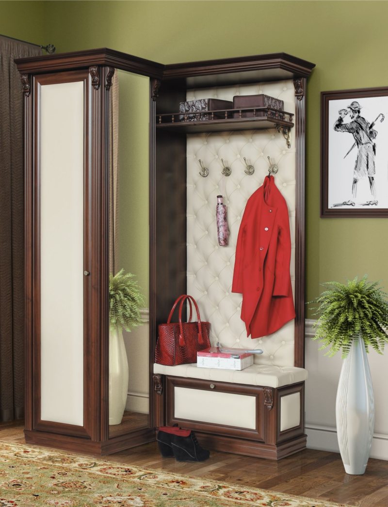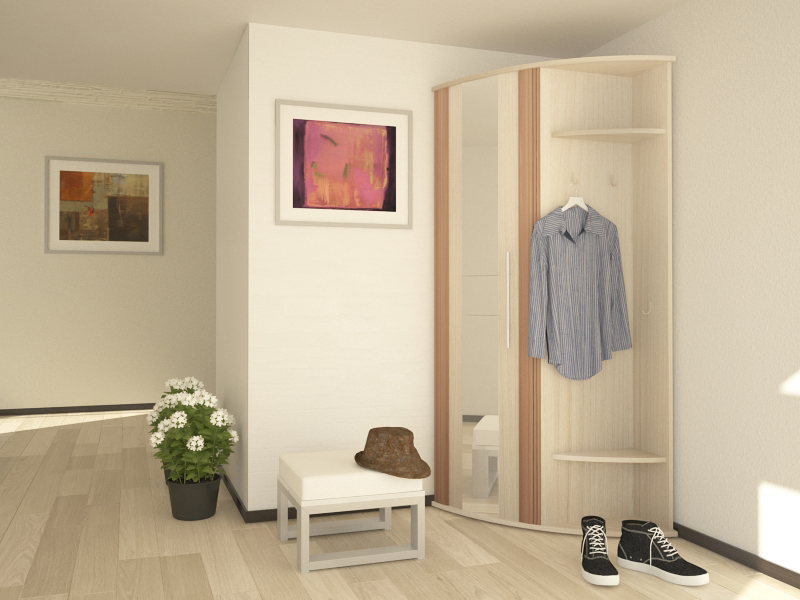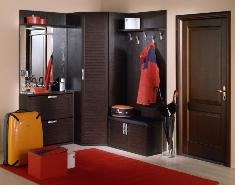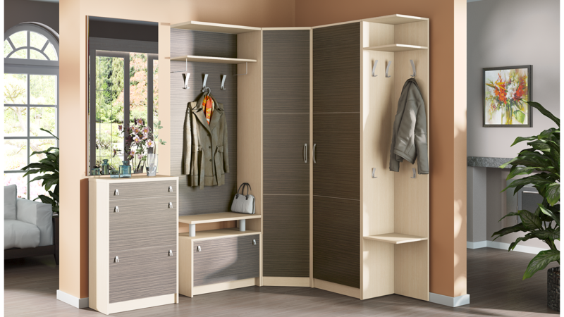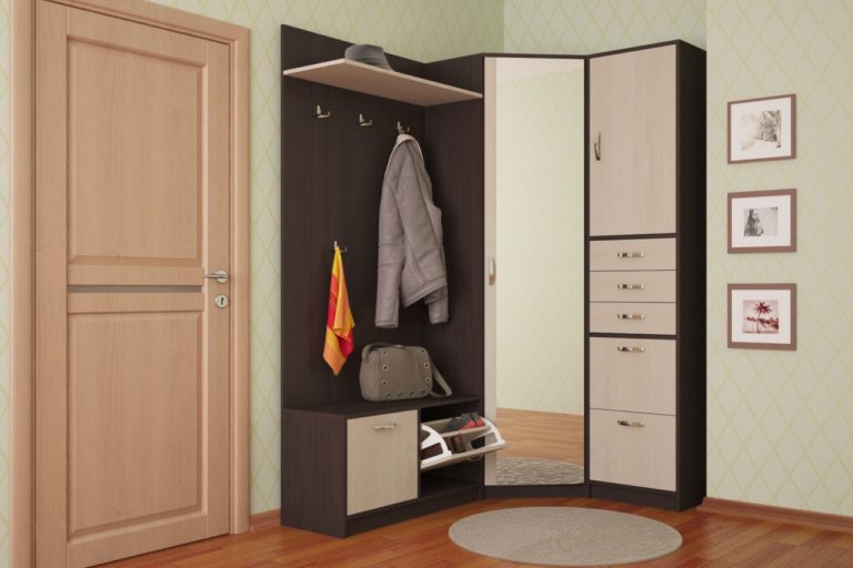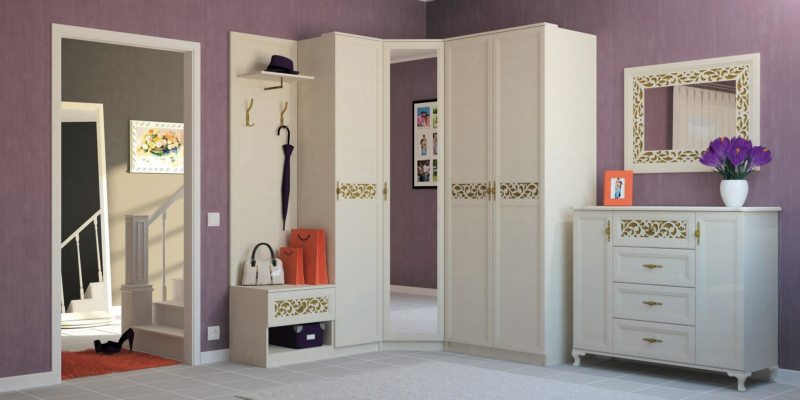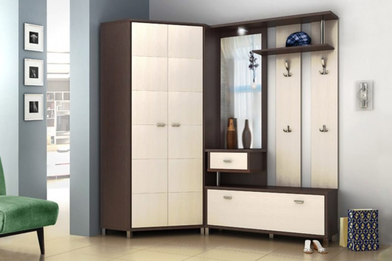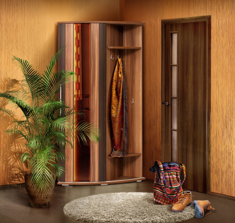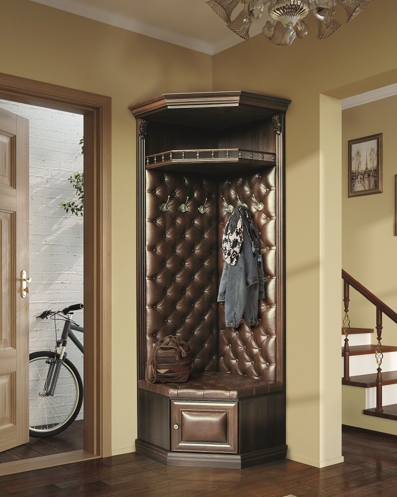 سوف تتناسب خزانة الملابس الزاوية حتى في قاعة صغيرة وتتسع لأكثر الأشياء الضرورية