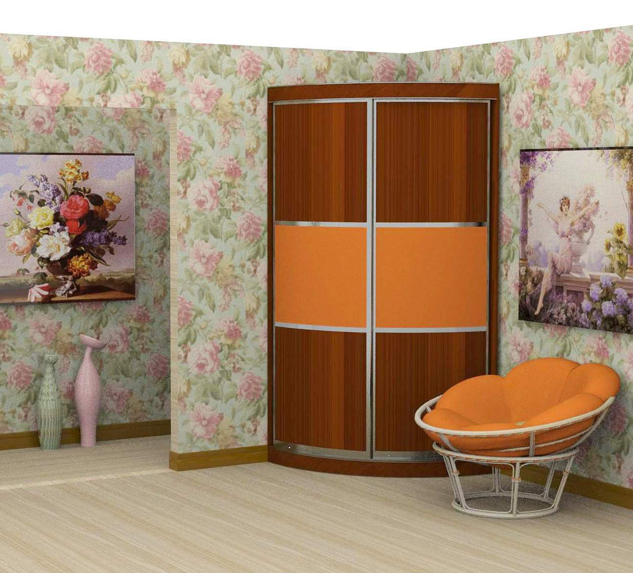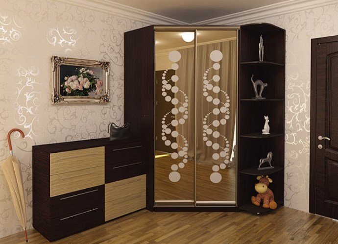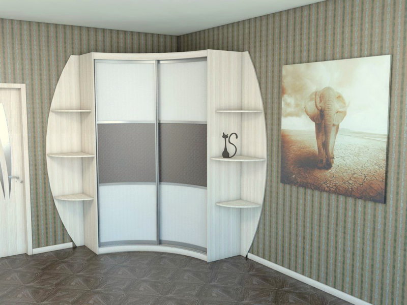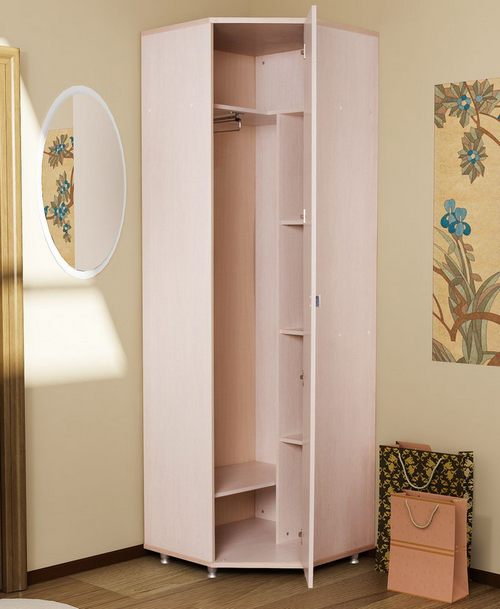 - القدرة على زيادة التطبيق العملي للغرفة. تسمح لك الخزانة باستخدام زاوية حرة ، والتي نادراً ما يتم استخدامها. من المهم بشكل خاص تثبيت مثل هذه الهياكل في ممرات صغيرة. يمكنك توفير متر مربع من خلال إضافة مساحة إلى الغرفة دون أن تشوشك.