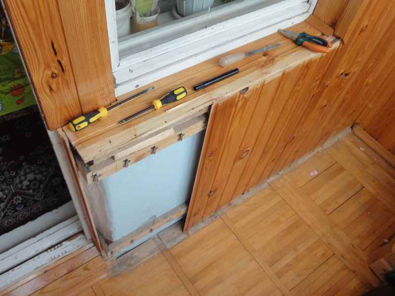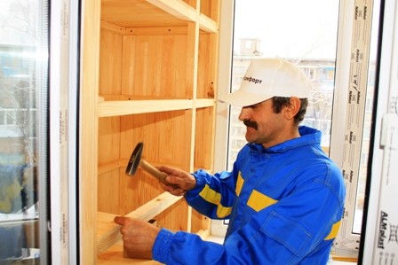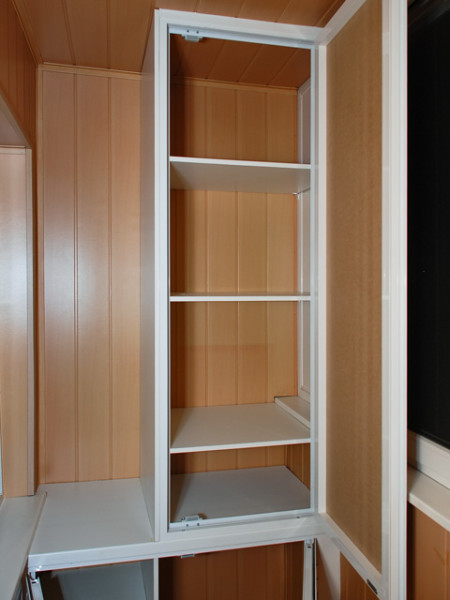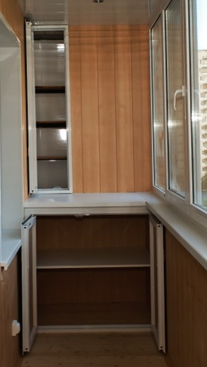 - اختيار مكان. كل شيء بسيط هنا ، لأنه على الشرفات هناك منافذ خاصة لتركيب الخزائن المدمجة.