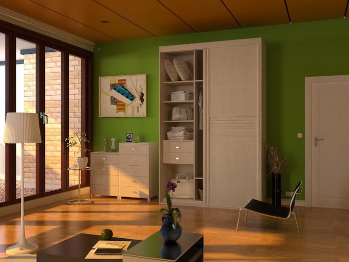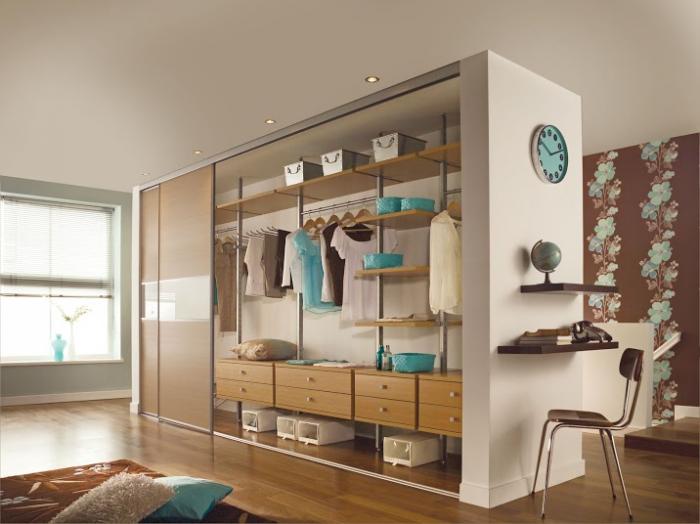 - خزانة مع أرفف - إذا كانت الأسرة تفضل أسلوبًا رياضيًا في الملابس والجينز والراجلان والقمصان.