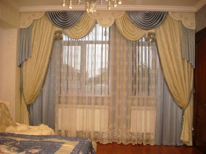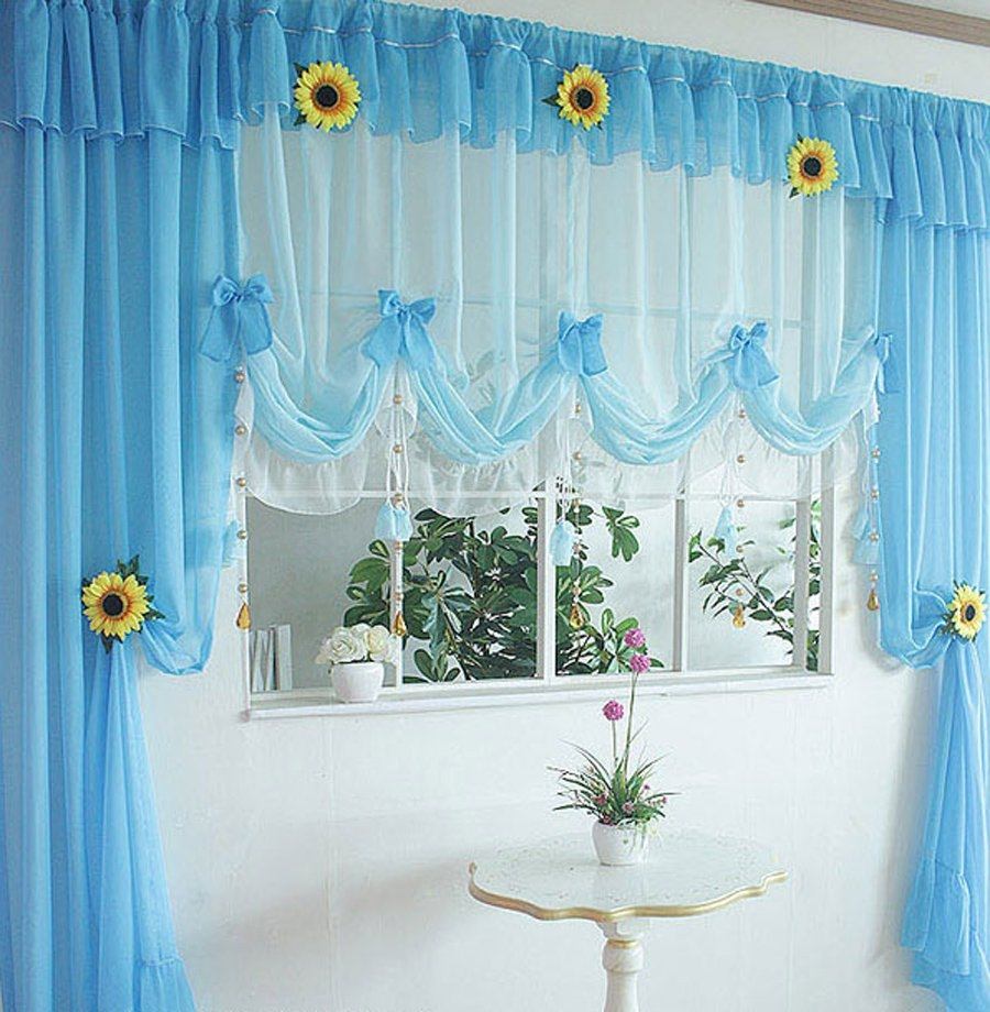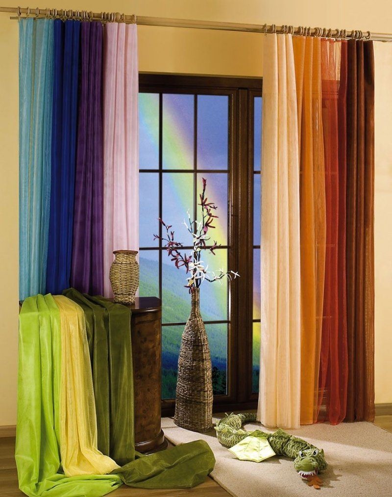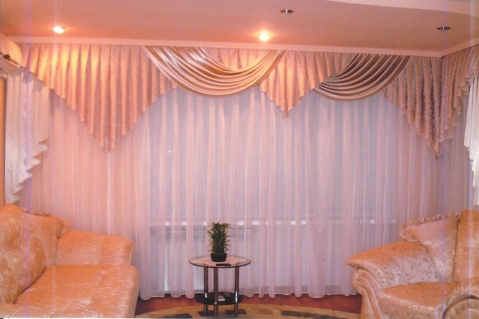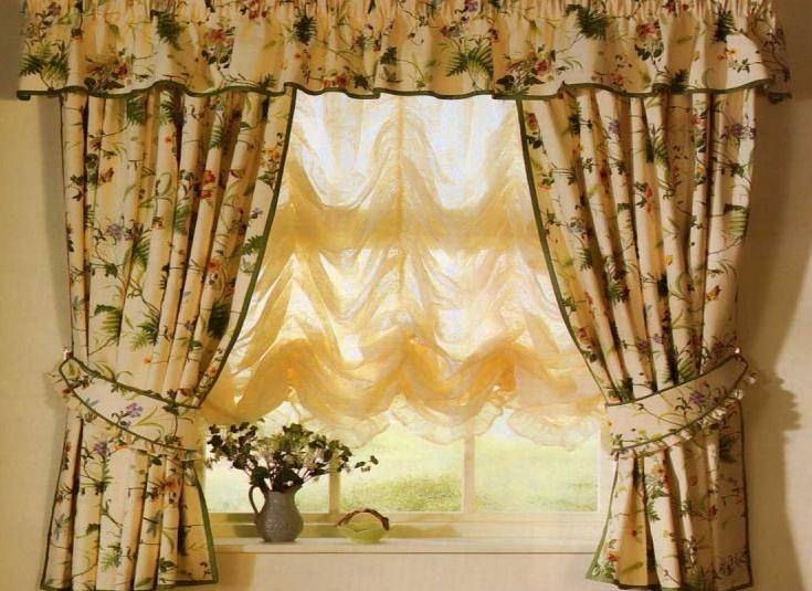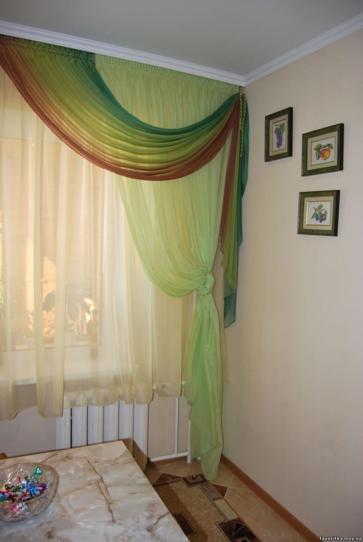 - يزين فتح النافذة. الستائر مصنوعة من أنماط مختلفة ، الحلي ، حتى الرسومات. لوحة الألوان للقماش ضخمة - يمكنك اختيار منتج لأي لون أو تصميم.