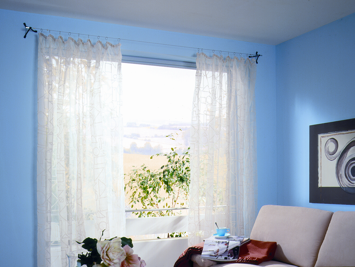 يمكن تعليق طراز ستارة Hilla بتمرير قضيب الستارة عبر حلقات مخفية ، أو بمساعدة الحلقات والسنانير