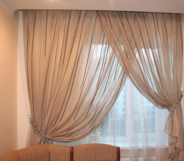 الاستيلاء مع التداخل - النسخة الأكثر الأصلي. ستساعد هذه التقنية في تزيين النافذة في الغرفة بسهولة ، وهي مزينة بأسلوب بروفانس العصري.