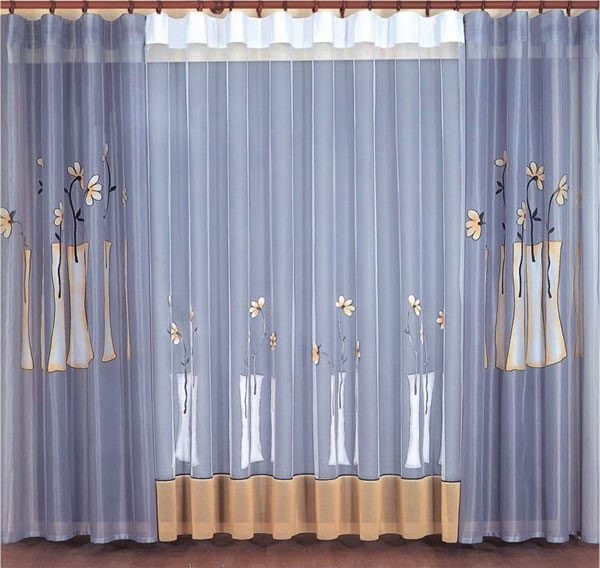 تول مصنوع من أقمشة شفافة وخفيفة الوزن. عادة ما يستخدمون فسكوزي جيد ، حرير ، حجاب ، قطن ، كتان. تحظى الأقمشة الطبيعية بشعبية كبيرة بين عشاق التصميم البيئي. الاصطناعية - أكثر عملية. إنهم لا يفقدون مظهرهم حتى بعد غسلات متعددة.