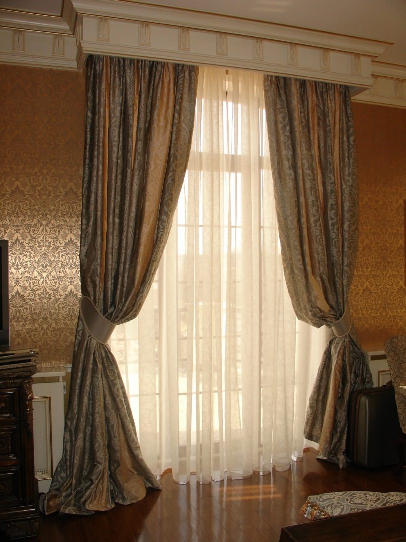 ستائر غرفة المعيشة بأسلوب كلاسيكي ، مزينة بالستائر والستائر