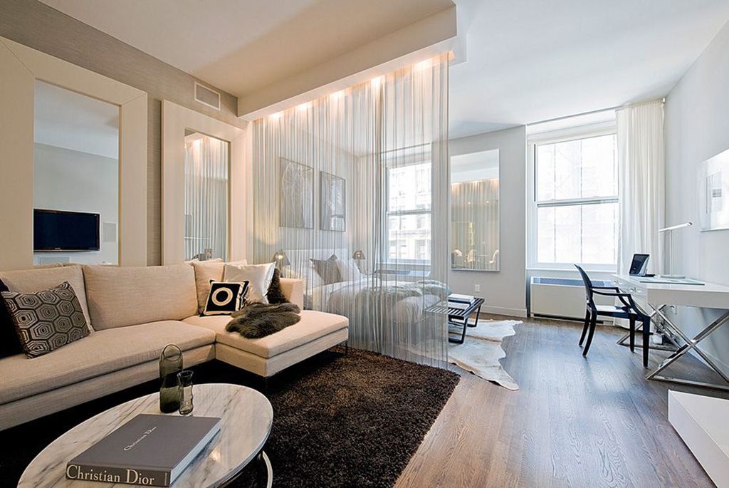 ستائر بأسلوب واحد لنوافذ شقة استوديو