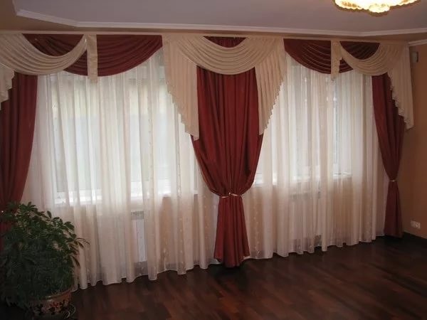 ومع ذلك ، عند اختيار الستائر ، يجب أن تأخذ في الاعتبار خصوصيات الغرفة الجديدة ، والتي هي نتيجة لعملية الدمج: زاد عدد النوافذ فيه.