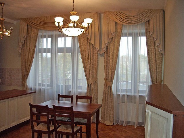 يتم اختيار الأناقة والأناقة للغرف العادية ، اعتمادًا على الغرض من الغرفة: الستائر المتواضعة غير المستهلكة ذات الرتوش مناسبة للمطبخ - وهذا يكفي تمامًا.
